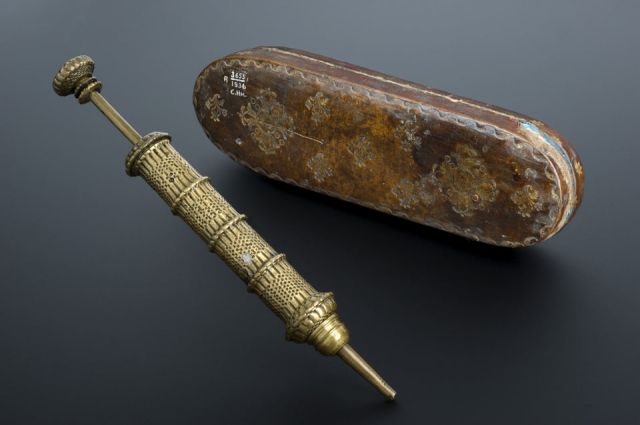 Brass syringe with case, 1601-1630
