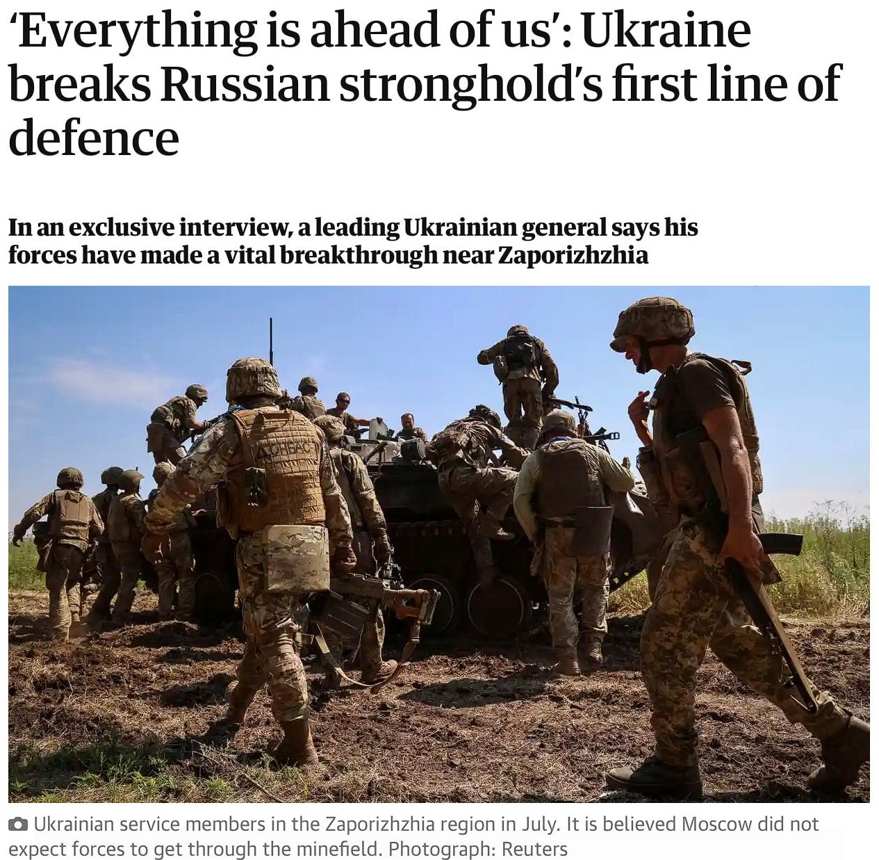 Ukrainian forces have overcome the first line of defense of the Russians and are on the second.