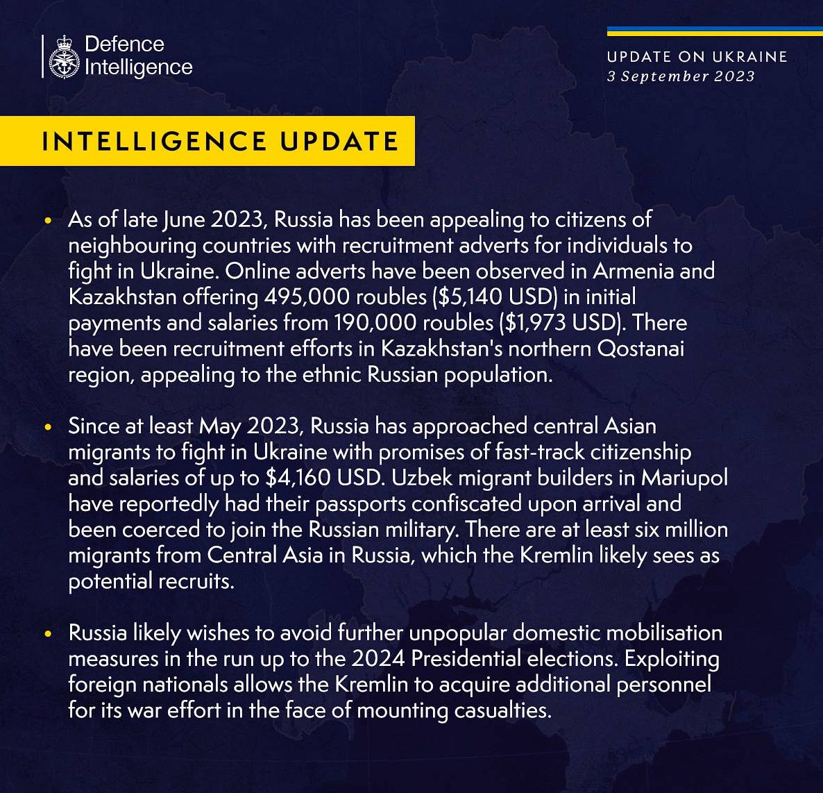 At the same time, at least 6 million migrants from Central Asia live in Russia, in whom the Kremlin probably sees potential recruits.
