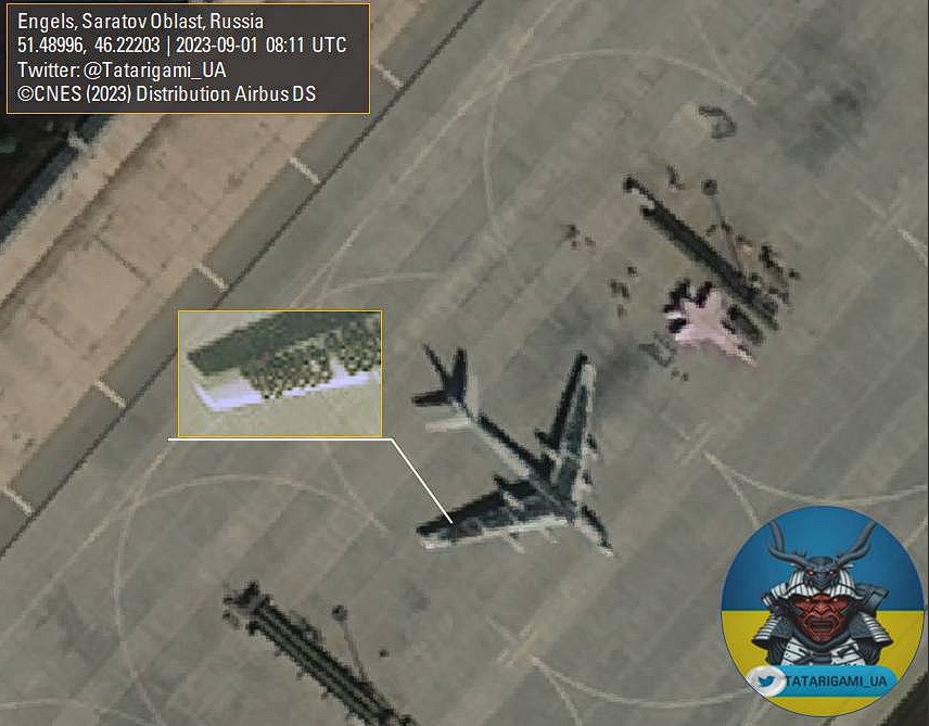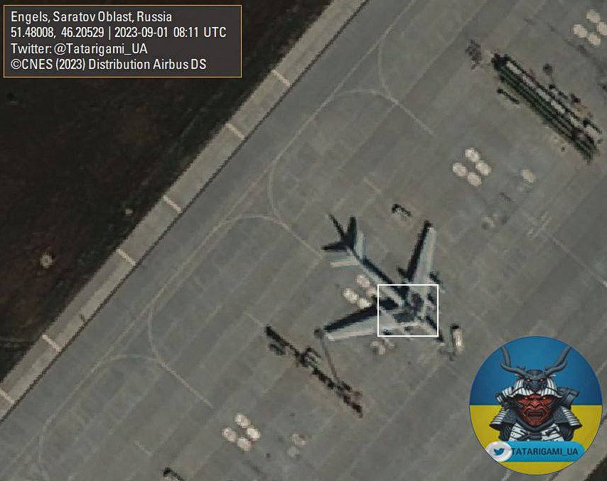 - Russian Tu-95 strategic bombers with car tires on top, which are used to protect against kamikaze UAVs at the Russian air base Engels.