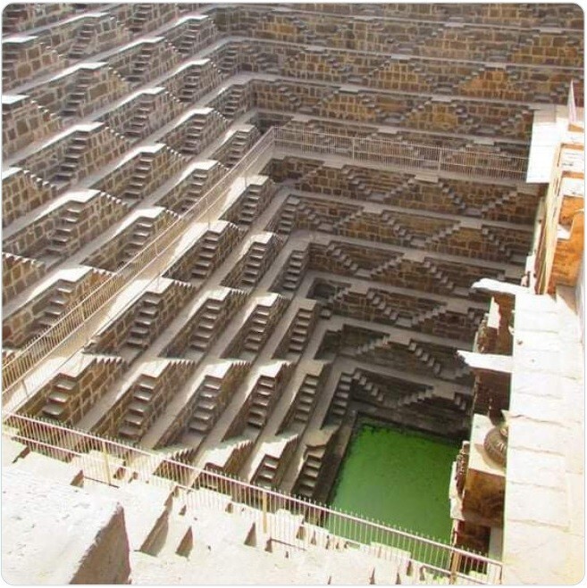 14. Chand-Baori - a stepped well located in Indian village of Abaneri. It was built in 800 AD for the purpose make it easier for people to access water. It is one of the largest and deepest stepwells of India with 3500 narrow steps