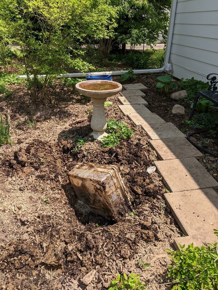 12. “For a long time we could not understand why our outdoor sink constantly clogged, so they called someone to check the plumbing. Turns out the drain went into a bucket from Home Depot.”