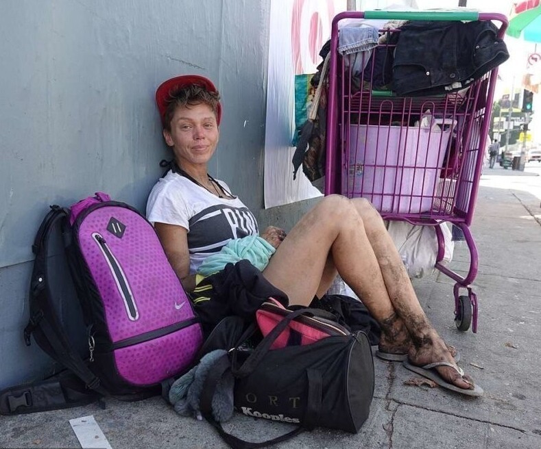 Loni, now 40, looks like she has no teeth. woman who abuses alcohol or drugs. Willison noticed when she rummaged in the garbage, and then, picking up a cart with things, walked along street of Los Angeles.