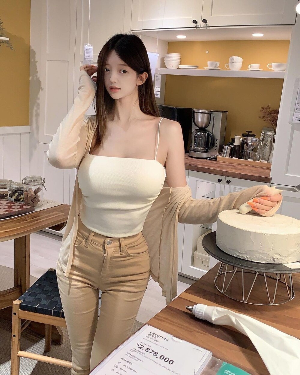 And the fact is that in Korea there really is a trend towards narrow chins, large breasts, thin and slender legs. 'Cause girl in general meets all standards, but only looks disproportionate. At She has a small head and a long body.