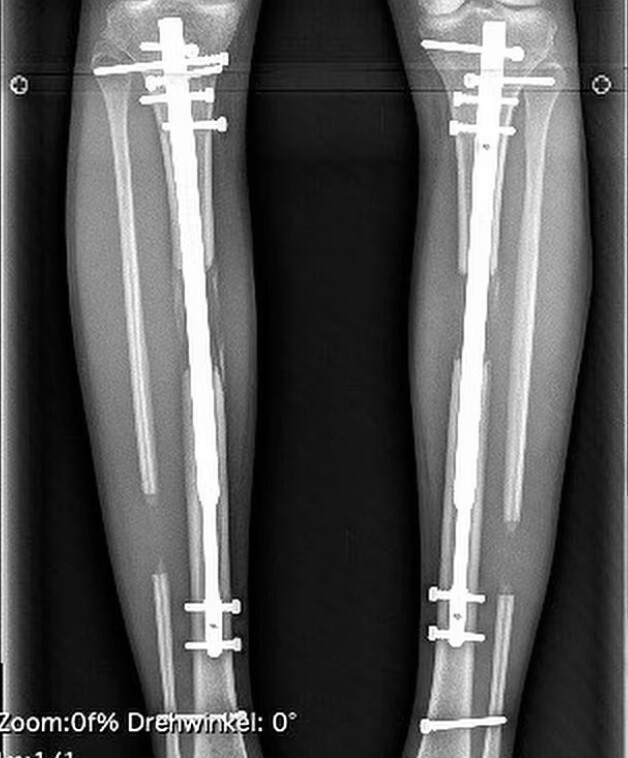 In an interview with the German newspaper Bild, she spoke about the process operations: "The bones of the lower leg are broken completely, the needles are inserted and the external fixation device. You stretch your shins yourself, tightening the nuts. Ten clicks a day on each side give additional 0.5 mm".