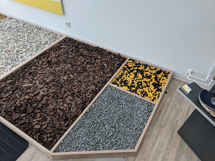 1. Different surfaces on the floor in the stroller shop to immediately "test" the selected strollers