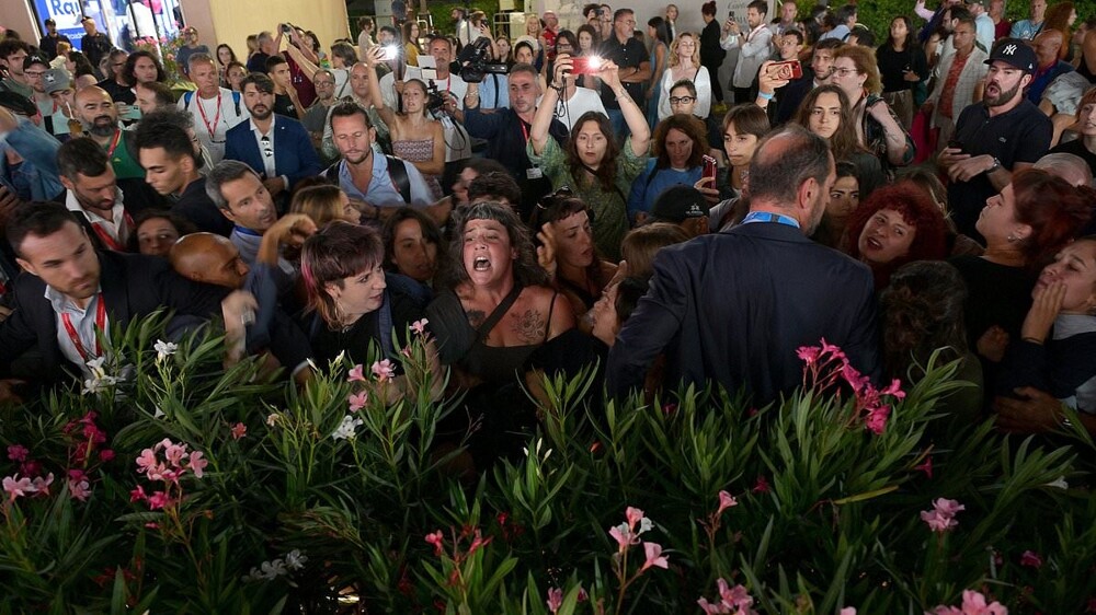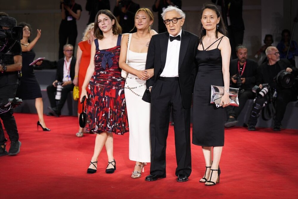 Protesters chanting "no rape culture" staged a scuffle with the security of the Venice Film Festival before the premiere Woody Allen's 50th film. The 87-year-old director stepped onto the red carpet with wife Sun-Yi Previn and adopted children.