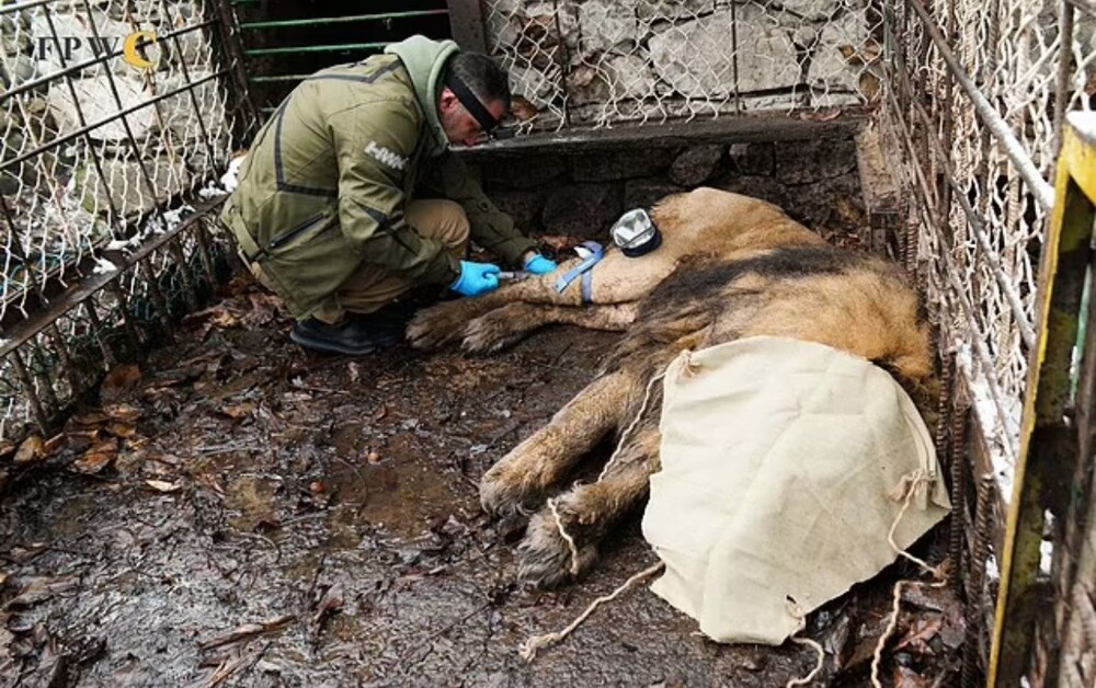 Lion forgot how to roar after spending six years in an abandoned zoo in a cramped cage
