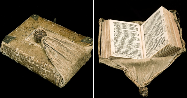 This little round book called the Codex rotundus was made in 1480. In terms of content, this is a liturgical book on Latin and French. It includes 266 pages, and its diameter is only 9 centimeters.