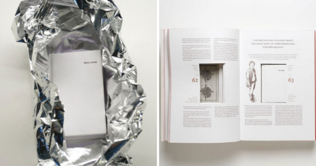 In order for the text to appear and be readable, the book must be wrap in foil, place in the oven and bake at 100° for 25 minutes. If you do not strictly follow the instructions, the collection of recipes will simply will burn. Here's a little test for all cooks.