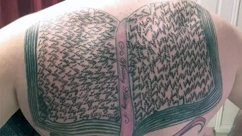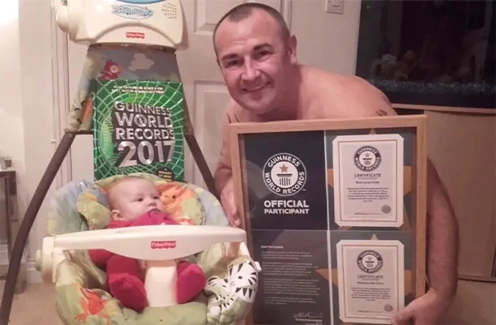 Mark Owen Evans set the world record back in 2017. Then he painted his back with a design in the form of the Guinness Book of Records, on on the pages of which the name of his newborn daughter was written 267 times Lucy.