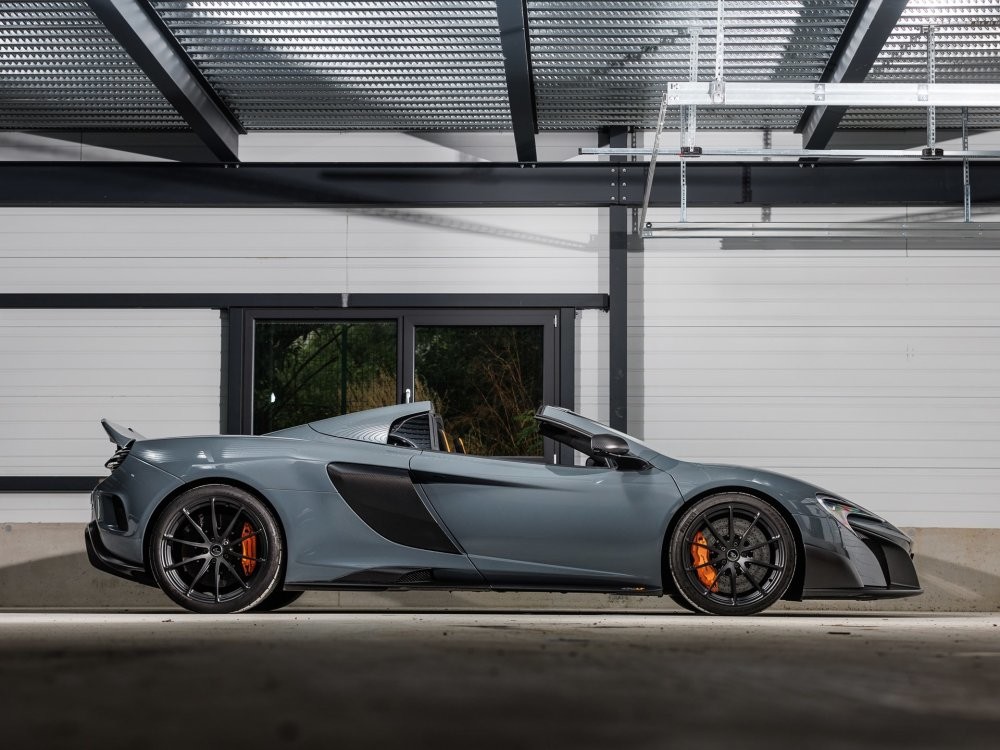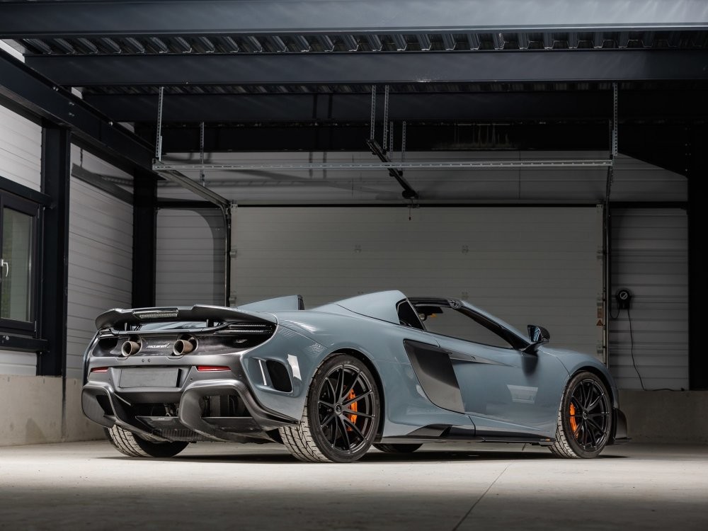 Also in 2015, the McLaren 657LT received an open version Spider with hard top and similar dynamic characteristics. Its circulation was 500 copies, just like the coupe. The copy put up for sale differs, for example, in a special shade body, black and orange interior design, as well as optional aerodynamic carbon fiber body kit.