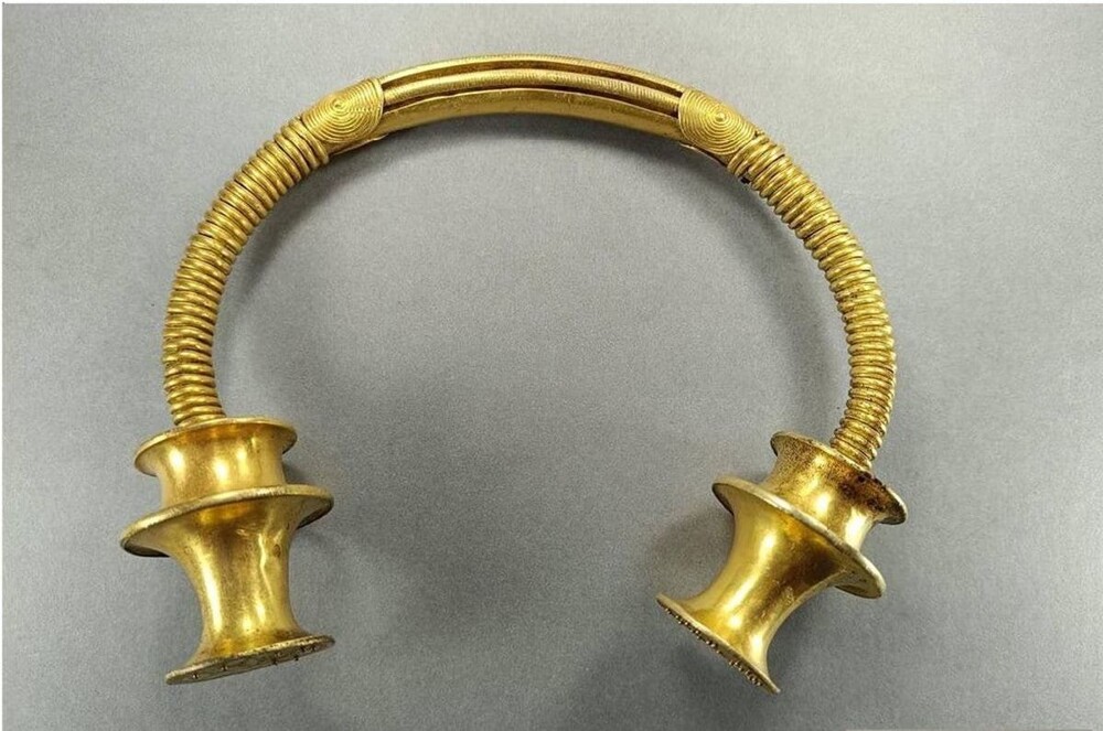 On August 29, Sergio Narciandi was repairing pipes in municipality of Kavandi (Asturias, northwestern Spain), when I noticed There is a golden necklace among the stones. Picking up the sparkling object, he realized that this is a torc - an ancient neck decoration that was usually worn by representatives nobility