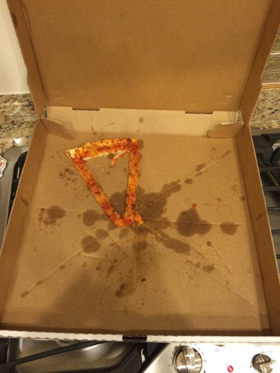 18. I returned from work very hungry, my neighbor gobbled it all up