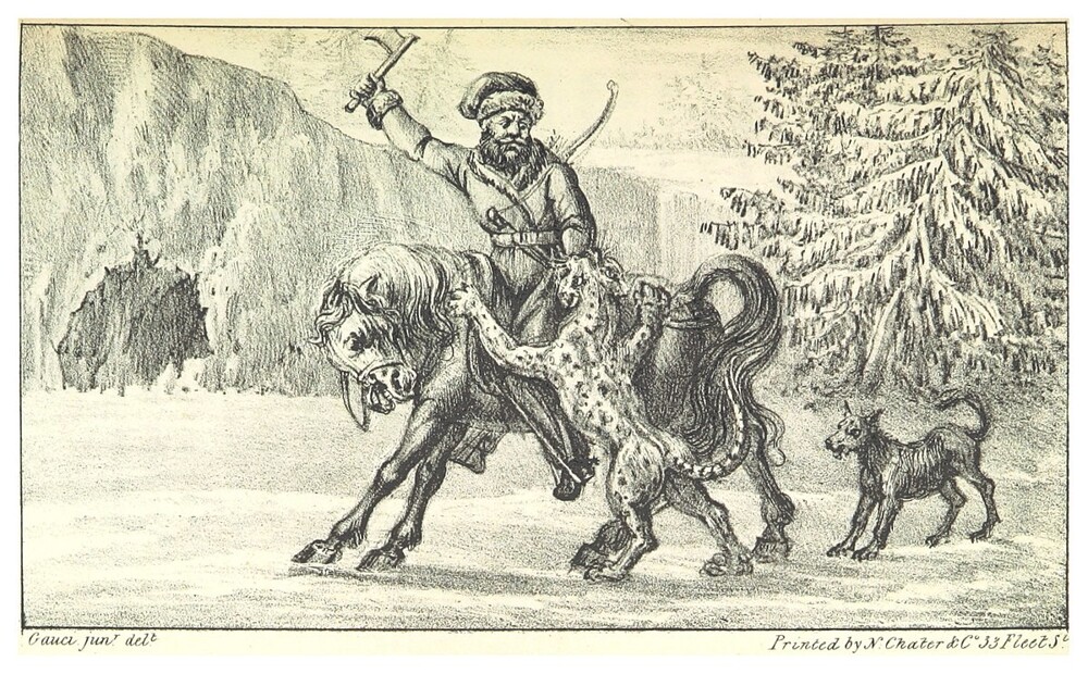 "The Cossack and the Siberian Tiger." Illustration from James Holman's book about travel