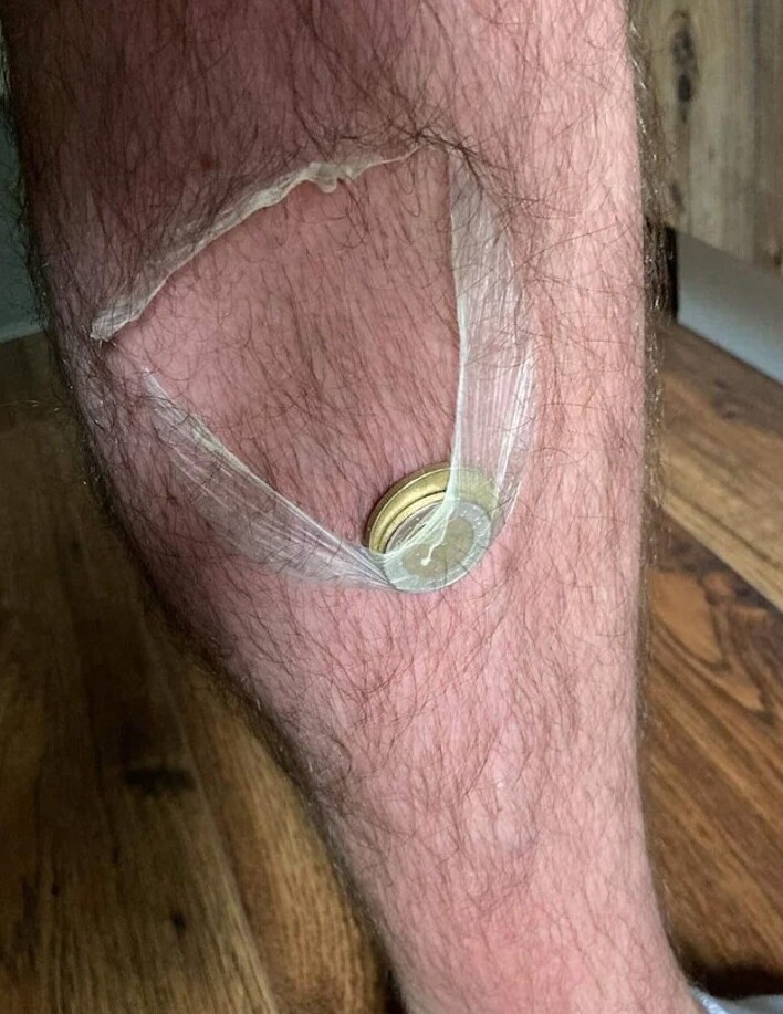 12. A piece of glass that was knocked out by concrete chips thrown out from under a circular saw