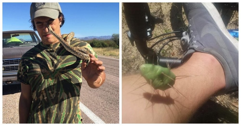3. I saw a cactus for the first time in my life. It fell off my tire bike right into my foot. Bloody leg and flat tire