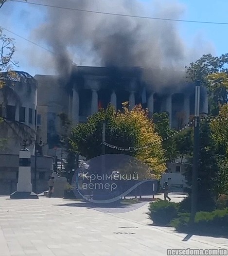 - The headquarters of the Russian Black Sea Fleet continues to burn in Sevastopol.