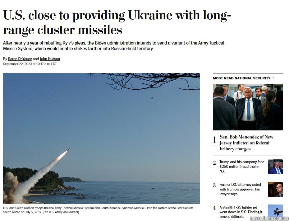 The Biden administration is close to a decision to provide Ukraine with a version of the ATACMS long-range missile armed with cluster bombs rather than a single warhead.