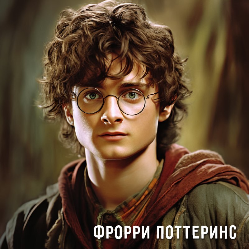 Frodo Baggins and Harry Potter turned into a curly-haired guy with green eyes and round Frerry Potterins glasses.