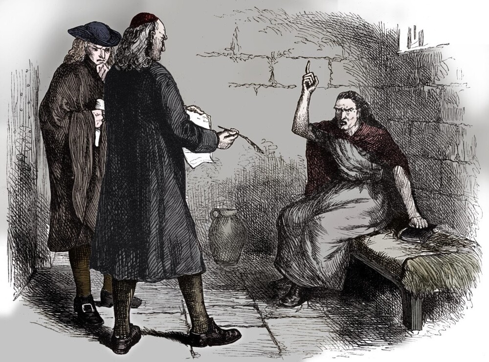 Giles began to be interrogated, demanding a confession of witchcraft. But the farmer stood his ground and rejected all claims. The matter threatened to drag on due to the old man's stubbornness. Questionable witnesses were immediately found who admitted that Giles' ghost had haunted and tormented them. And the farmer must suffer the deserved punishment.