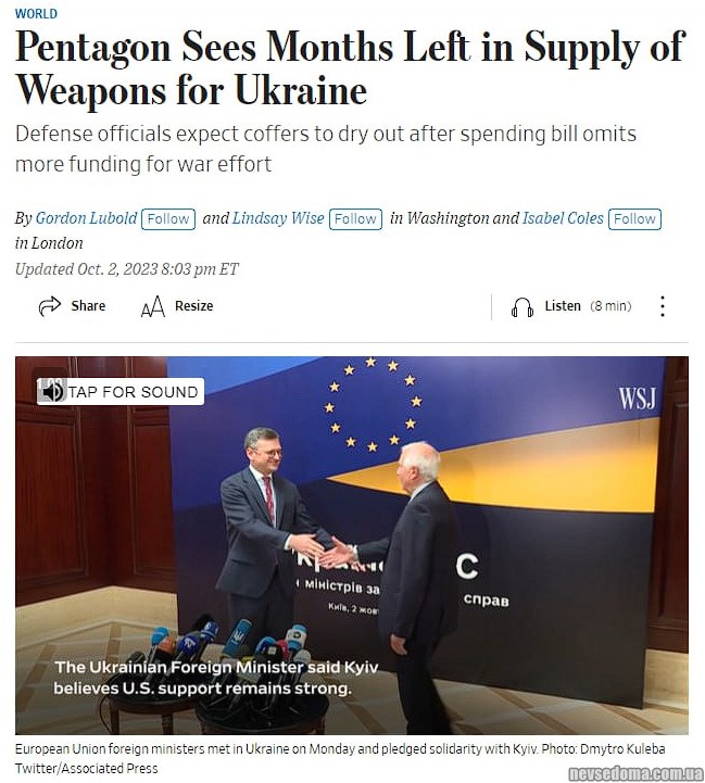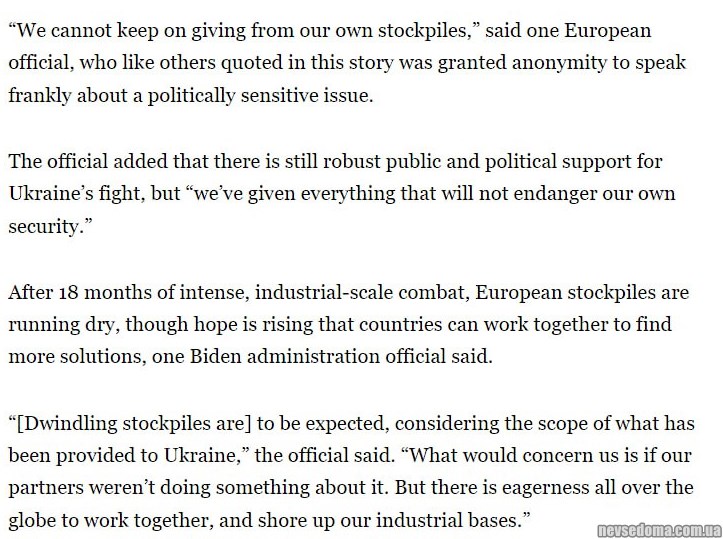 "We will continue to supply equipment to supply Ukraine, but now they need things like air defense and artillery ammunition, and we have run out of all of that."