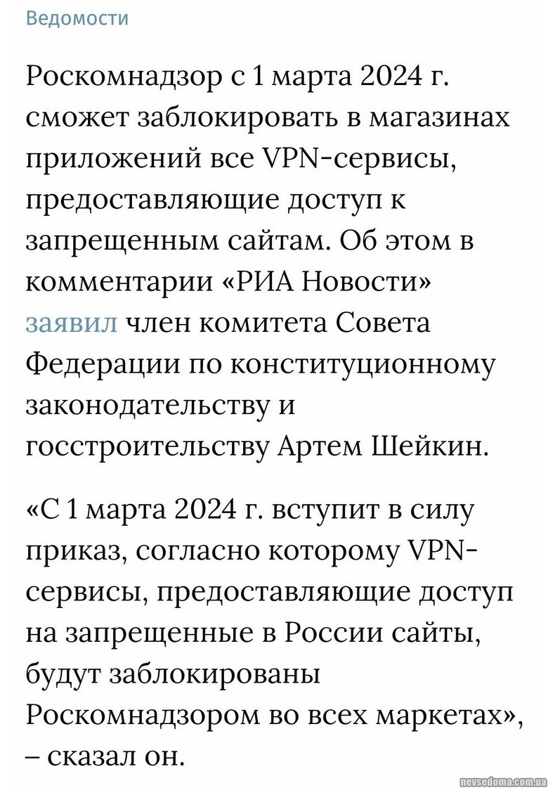 - From March 1, 2024, an order will come into force according to which VPN services that provide access to sites banned in Russia will be blocked by Roskomnadzor in all markets