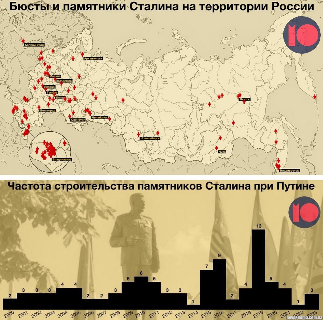 - The 110th monument to Stalin appeared in Russia — 99 of them were installed under Putin. The pace of construction of monuments doubled after the annexation of Crimea