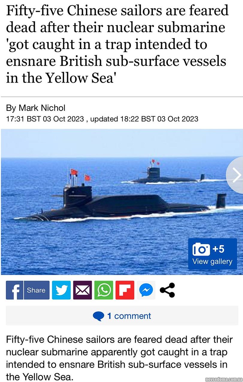 «As far as we understand, the death was caused by hypoxia due to a system malfunction on the submarine. The submarine collided with a chain and anchor obstacle used by the Chinese Navy to catch US and allied submarines.