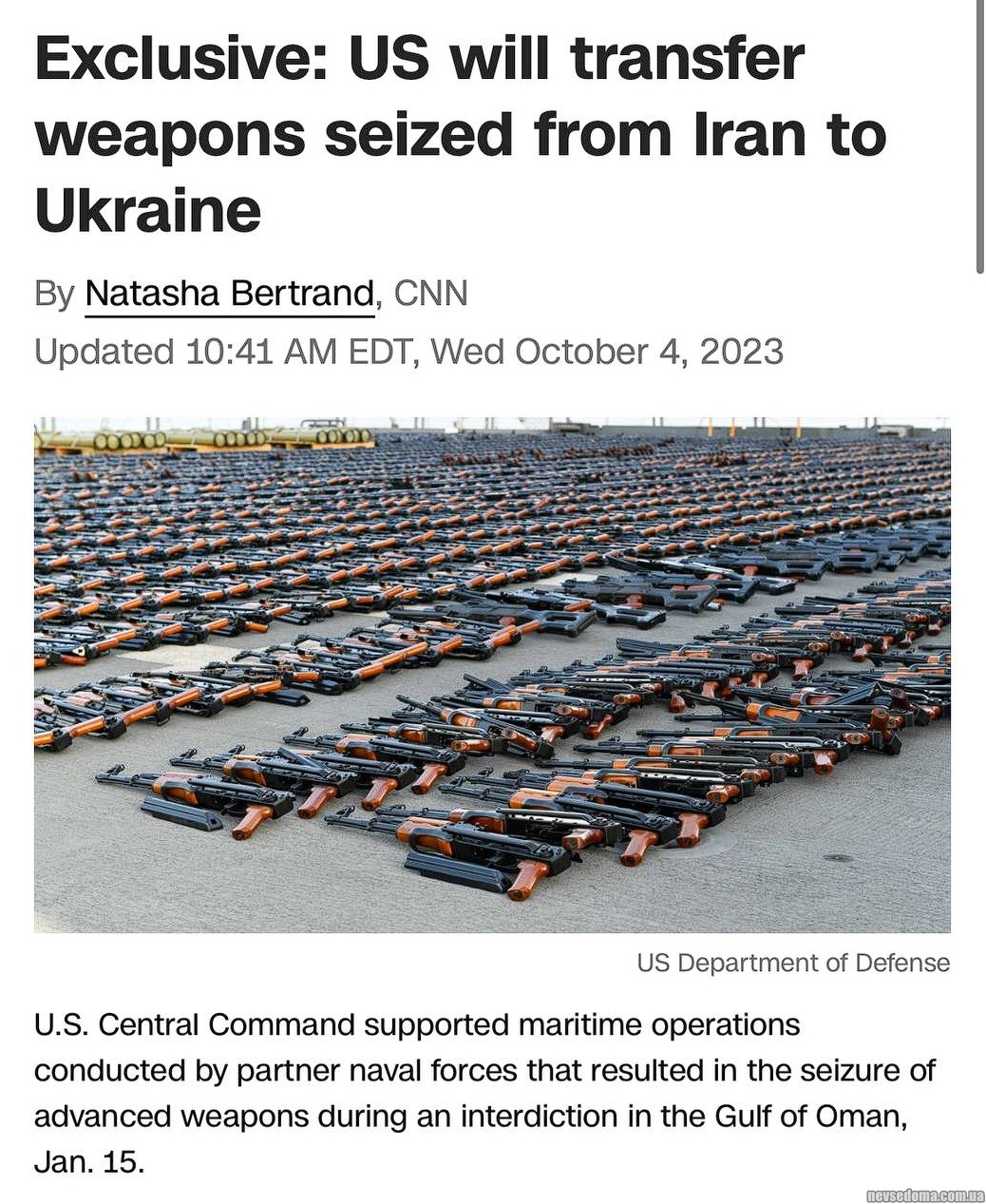 The United States will transfer thousands of captured Iranian weapons and ammunition to Ukraine.