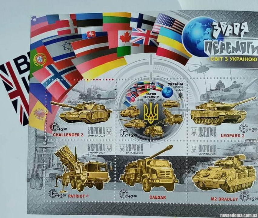 - Ukrposhta, the national postal operator of Ukraine, has released a new collection of stamps called “Weapons of Victory,” which includes Western-provided Challenger 2 tanks. and "Leopard-2", "Patriot" air defense system, "Caesar" self-propelled howitzer and the M2 Bradley fighting vehicle.