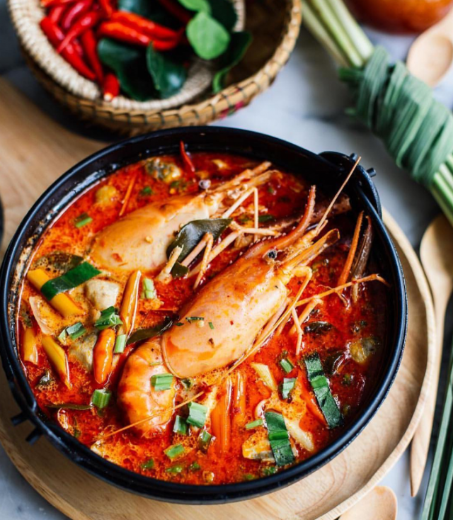 Asam laksa is prepared using a fish broth made from dried anchovies. It definitely includes fish, shrimp and various seafood.