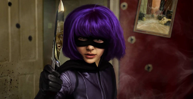 Behind the mask of Hit Girl (Mindy MacReady) is Chloe Moretz, who received an MTV award for the film Kick-Ass (2010).