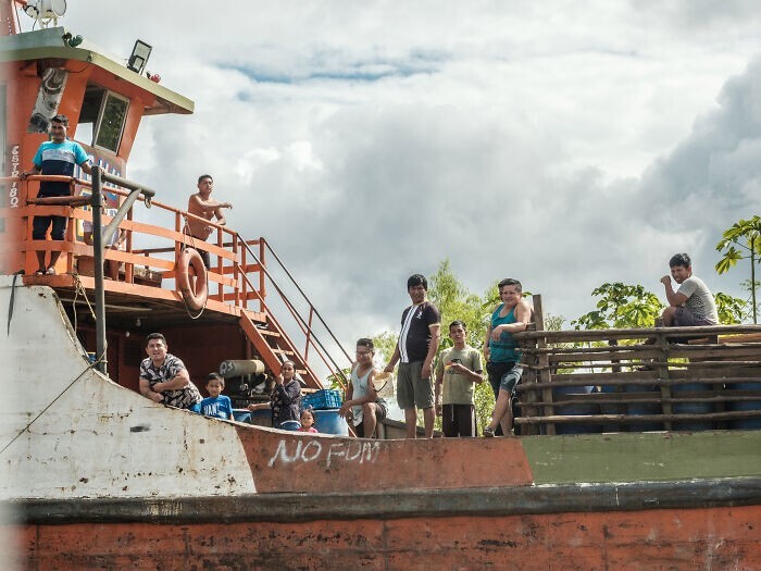 The cargo ships "Eduardo 7" depart from the port of Yurimaguas every few days: there is no exact schedule, it all depends on how quickly the ship is loaded. They mainly transport livestock, birds, various goods, as well as local residents who want to get to a neighboring community or city. In total, the 700-kilometer journey on Eduardo 7 took 52 hours. During the journey, the boat makes several stops near small villages. The final destination is the city of Iquitos.