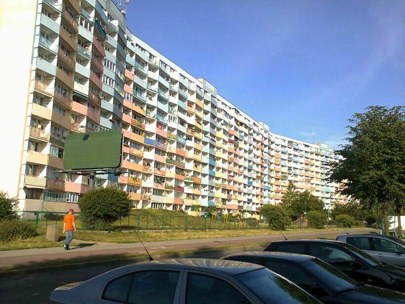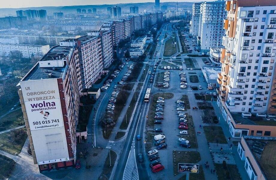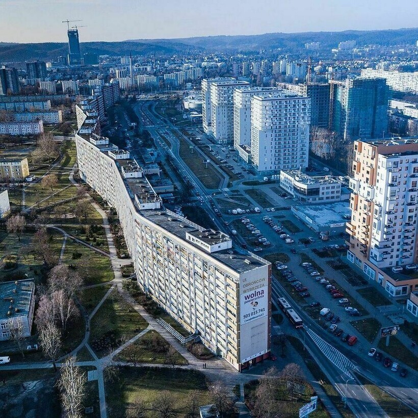 Several modest giants settled in Gdansk, a coastal town in Poland, many years ago. They stand out against the background of the urban landscape: panel buildings with an unusual wave shape resemble a huge wall that separates residential areas from each other.
