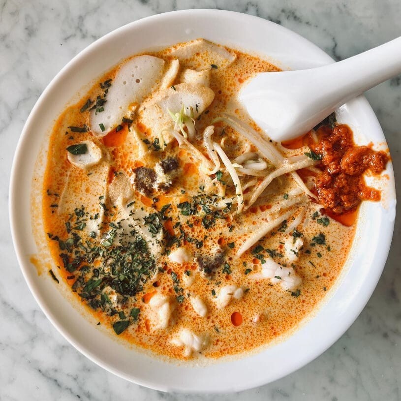 Asam laksa is prepared using a fish broth made from dried anchovies. It definitely includes fish, shrimp and various seafood.
