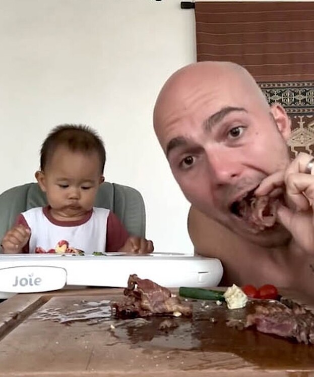 31-year-old blogger Pauly Long lives in Bali and has long been addicted to a diet of raw meat. Now he has switched his one-year-old son to this diet.