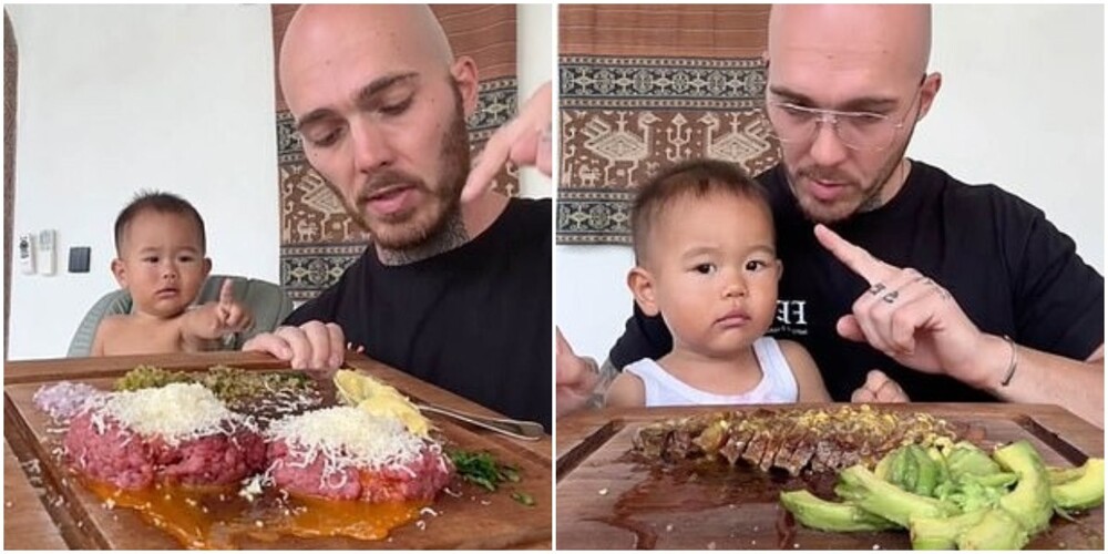 31-year-old blogger Paulie Long is confident that eating raw meat is good for his one-year-old son. Long lives in Bali and has been eating only raw meat and dairy products, with a small amount of fruits and vegetables, for several years. He believes that babies intuitively know what foods are good for them - and began feeding his son raw meat when he was five months old. At first it was raw liver, and now it’s steaks and even bovine testicles. According to the father, his son simply adores the latter.