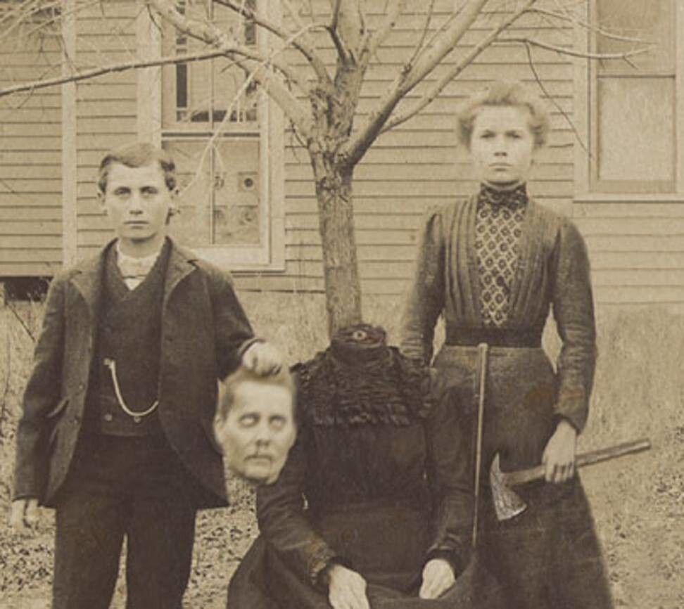 The second most famous photograph in the style of a headless portrait is a photograph of the Barkley family. It depicts blank-faced children and their mother. The girl has an ax in her hands, the boy holds his mother's head by the hair. It is believed that the Barkley offspring prepared for Halloween in 1890 in this wild way. The young criminals, who went on to make stuffed dolls representing their parents instead of their usual entertainment, were filmed by a neighbor who dropped by for a visit.