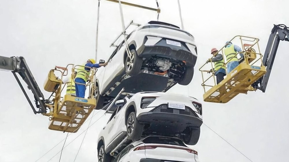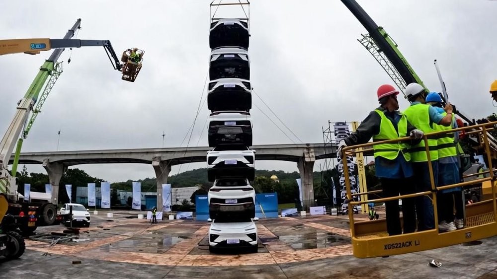 Chery repeated Volvo's trick - built a tower of eQ7 electric crossovers (3 photos + 1 video)