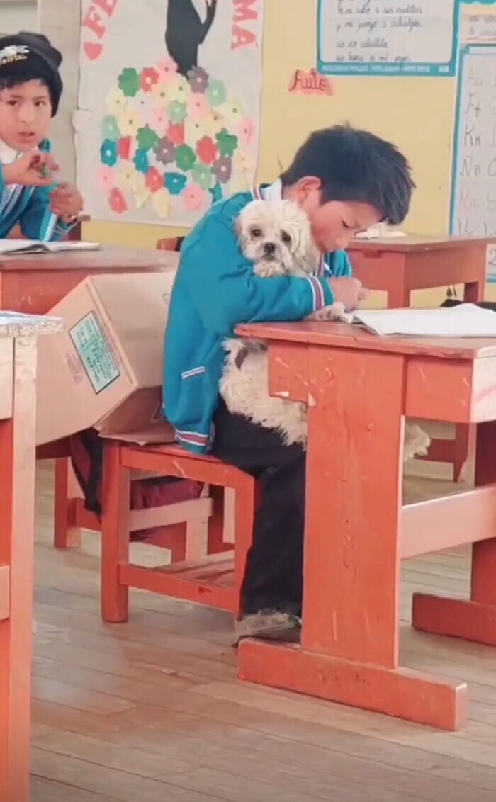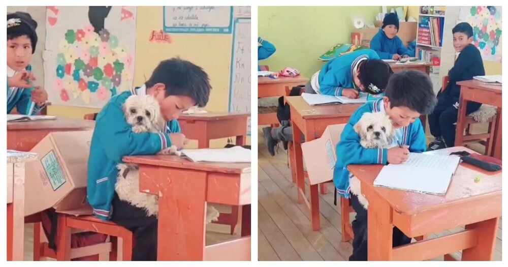 The teacher was touched by the student’s sincerity and concern for his four-legged friend. When she saw the positive changes in Lopez's life, she knew it was the right decision. She posted a touching video of a boy diligently studying while holding his dog, who sits patiently and watches the class. The child felt happier and calmer - now he was only worried about math problems.
