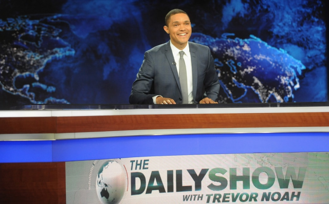 Pictured is Trevor Noah, the current host whose tenure is lauded by the Hollywood Reporter. Below is the first host of the show.