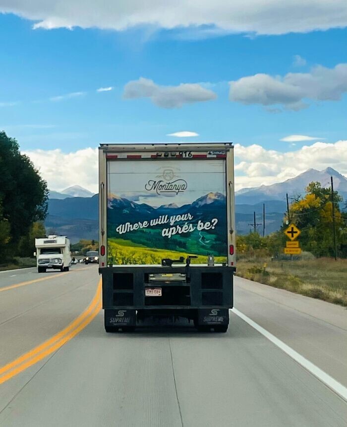 22. “The picture on the truck in front of us lined up perfectly with the mountains.”