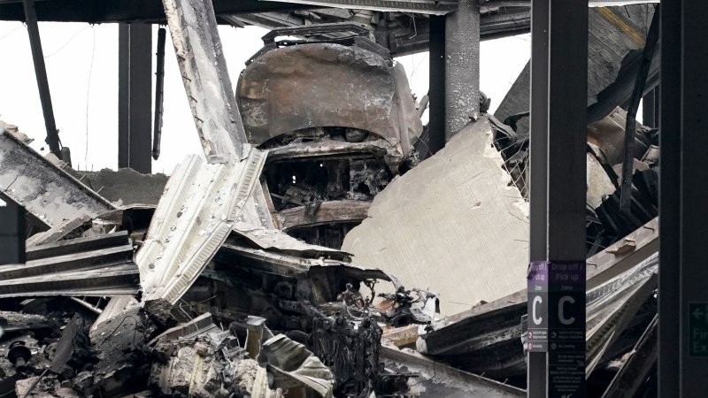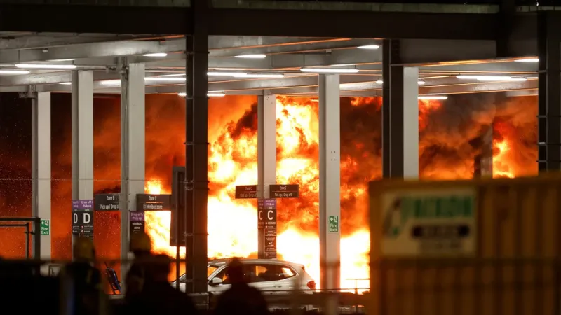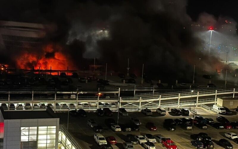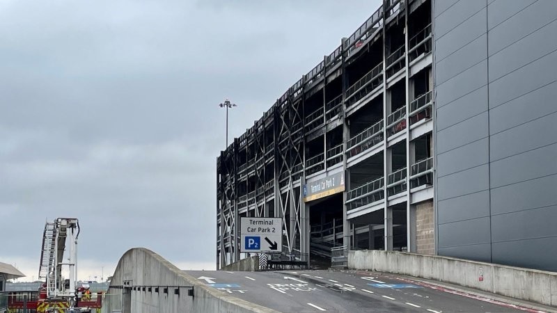 The car park, which opened in 2019 as part of a £20m upgrade, was not equipped with sprinklers. One fire chief called on airport officials to install them in existing and future parking lots.