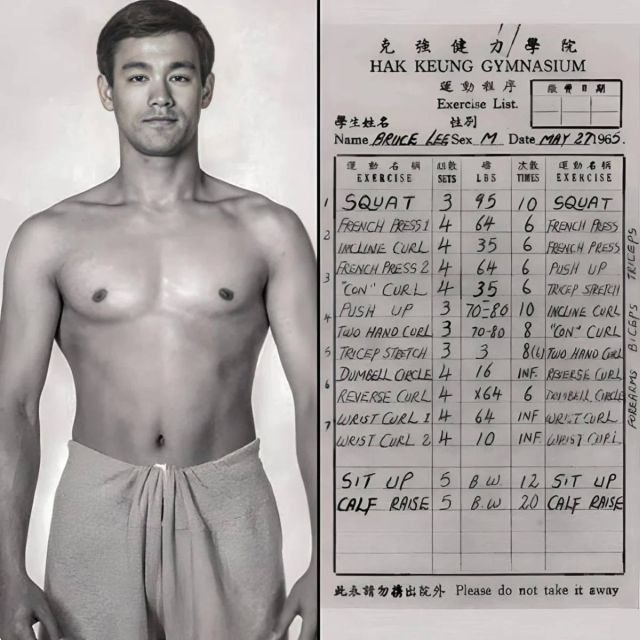 Bruce Lee's morning workout plan in 1965.