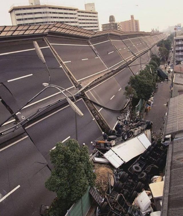 Highway in Kobe (Japan), after the Great Hanshin-Awaji earthquake with a magnitude of 7.3 on the Richter scale, January 17, 1995.