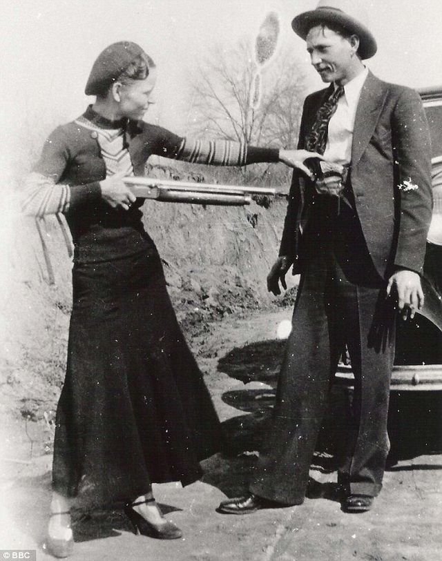 Photo of robbers Bonnie and Clyde together in 1933.