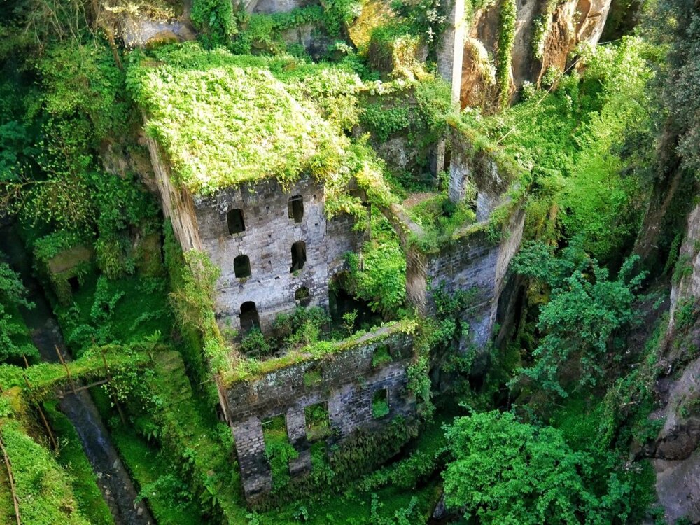 Now in the center of Sorrento you can see a deep canyon with the ruins of an old mill. From the bridge at Piazza Tasso there is a beautiful view of the Valley of the Mills. To go down into the canyon, you need to have special equipment and skills.