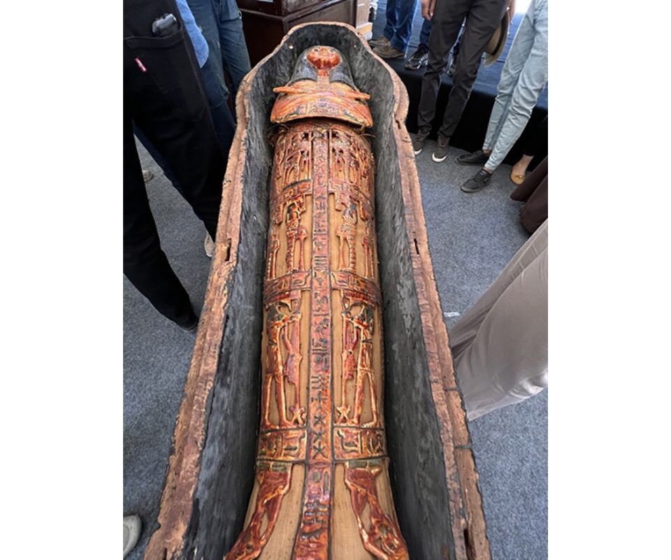 Untouched burials from the New Kingdom and Late Period were discovered by archaeologists in the El-Gureifa area, on the territory of the Tuna el-Gebel necropolis in Middle Egypt. Among the finds are painted anthropomorphic sarcophagi with preserved mummies, thousands of ushabti figurines, amulets and other burial goods, as well as a papyrus about 15 meters long with the text “Book of the Dead”. The Egyptian Ministry of Tourism and Antiquities talks about the findings in a press release, as well as Ahram Online.