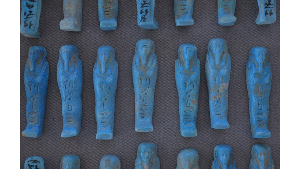 The priests were accompanied to the afterlife by hundreds of ushabti made of ceramics and Egyptian faience, jewelry, amulets, wooden and stone figurines of Anubis. The mummies were kept in anthropomorphic painted sarcophagi and were covered with carved overlays and polychrome painting.